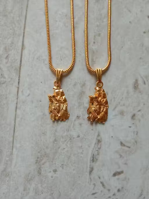 Divine Radha Krishna Gold-Plated Pendant With Round Chain | Yehra Designs
